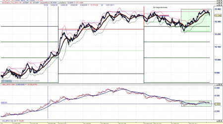 Como se puede ver en el gráfico, hemos llegado a una zona de soporte que debería parar el precio. Romper los 2715-2720 supondría la ruptura de la directriz alcista y la casi segura continuidad de las caídas.